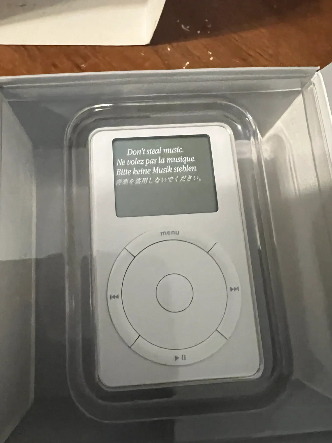 2nd Generation 20gb original iPod. Unit is sealed, but cellophane is off outer box. 100% as delivered from Apple.